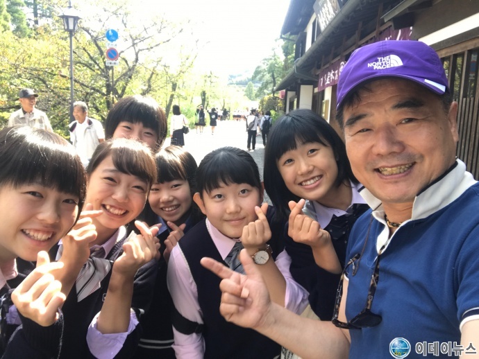 마침 이 곳을 지나는 여중학생들이 단체사진을 찍으며 격의없이 함께하자고 손짓을 해 왔다. 자연스럽게 수은 강항선생을 말하며 후지와라세이카를 모바일폰에서 검색해 보기를 권했다.