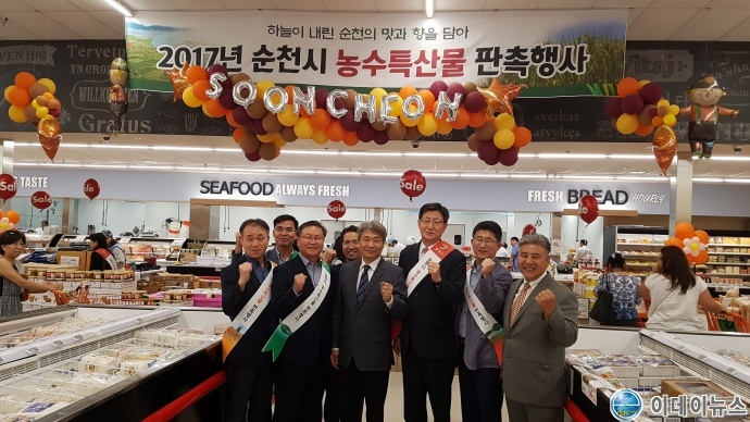 순천시 전영재 부시장을 단장으로 꾸려진 판촉팀은 지난 9월 28일부터 10월 1일까지 4일간 미국 애틀랜타 시온마켓에서 ‘순천의 맛과 향을 담아’라는 슬로건으로 우수 농수특산물 판촉행사를 가졌다.
