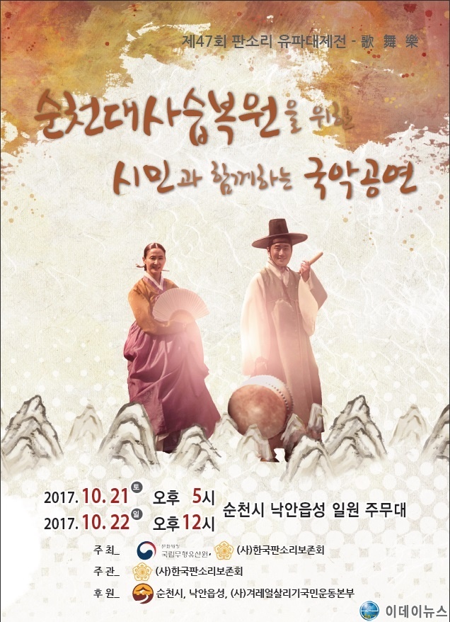 600여년의 전통을 이어온 순천 낙안읍성에서는 오는 21일과 22일 이틀간 ‘제47회 판소리 유파대제전’을 개최한다.