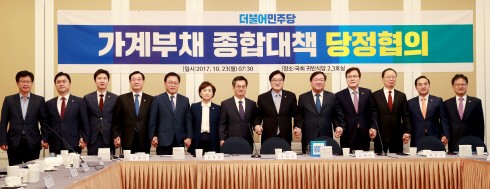 한편 이날 당정협의에는 여당에서 우원식 원내대표를 비롯해 김태년 정책위의장, 박광온 제3정조위원장 등이 참석했다. 정부에서는 김동연 경제부총리 겸 기획재정부 장관과 김현미 국토교통부 장관, 최종구 금융위원장, 최흥식 금융감독원장 등이 자리했다.