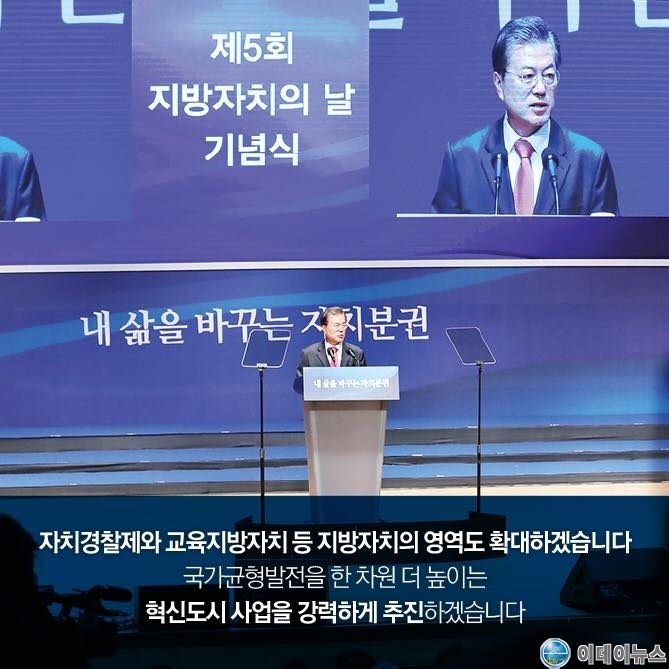 【문대통령, 제5회 지방분권의 날 기념식 참석 사진. 출처 : 청와대】