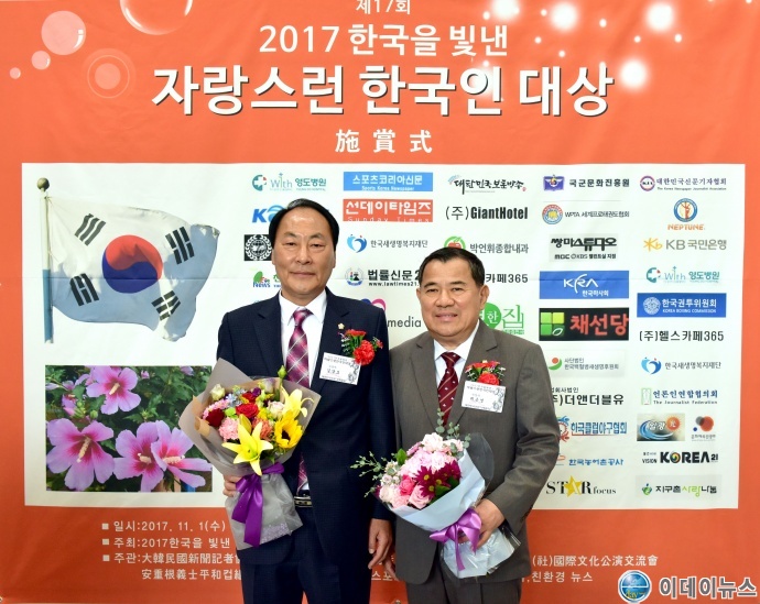 영광군의회 김양모, 최은영 의원이 지난 1일 백범 김구기념관에서 개최된 2017 한국을 빛낸 자랑스런 한국인 대상 시상식에서 지역활성화 발전 혁신분야와 사회봉사 공로분야에서 각각 대상을 수상했다.
