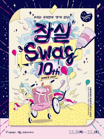 장애예술가의 독특한 멋과 매력을 느낄 수 있는 `잠실스웨-그`에는 입주작가 12명의 작품 총 40여 점과 잠실 10년 아카이브가 전시되며 입주예술가의 작업실을 공개하는 오픈스튜디오도 마련됐다.