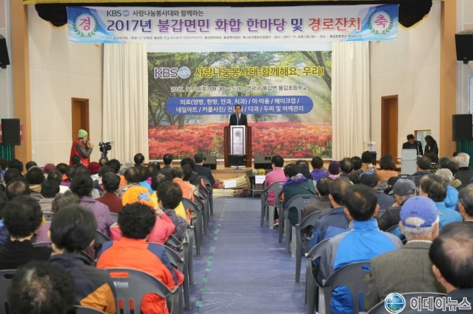 특히 이번 행사에 KBS 나눔 봉사대 100여 명이 함께하여 양‧한방 진료, 마사지, 네일아트, 커플 사진촬영 등을 통해 주민들과 어르신들에게 기쁨과 편안함을 전하는 시간을 가졌고 불갑면 청년회(회장 박재)에서 준비한 생활용품, 농기구 등 푸짐한 상품을 안겨드려 모두가 활짝 웃을 수 있는 하루가 되었다.