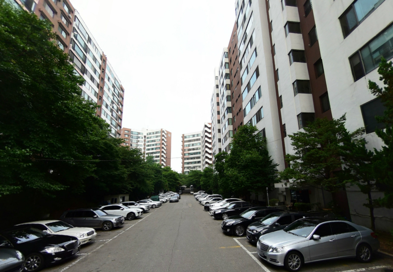 워커힐아파트는 1978년 12월 지상 13층 14개동 576가구 규모로 지어졌으며 1단지 432가구, 2단지 144가구로 구성된다.