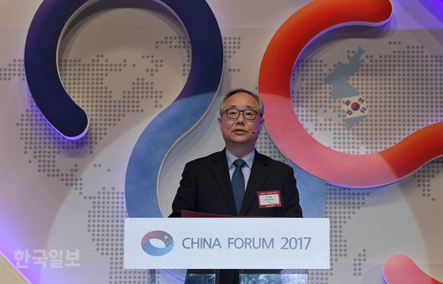 이날 서울 장충동 신라호텔에서 `한ㆍ중 수교 25주년, 새 패러다임을 찾아서`를 주제로 열린 `2017 차이나포럼`에 기조연설자로 나선 이 전 대사는 지난달 31일 발표된 한중 간 협의 결과와 관련 "국가관계에 있어 형식은 때로는 내용에도 큰 영향을 미치는데 중국은 차관보급이, 한국은 차관급이 교섭 상대였다는 것은 찜찜하다"고 밝혔다. 남관표 국가안보실(NSC) 2차장의 협상 상대로 쿵쉬안유(孔鉉佑) 중국 외교부 부장조리를 내보낸 것 자체부터 동등한 형식이 아니었다는 것이다.