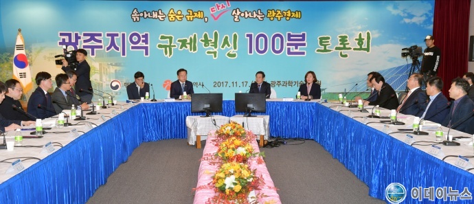 광주광역시는 행정안전부와 함께 17일 오후 광주과학기술진흥원에서 ‘솎아내는 숨은 규제 다시 살아나는 광주경제’라는 주제로 ‘규제혁신 100분 토론회’를 개최했다.