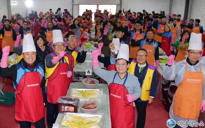 이날 행사에는 신한금융지주호남본부 임직원 170여 명과 광주광역시자원봉사센터의 빛고을청년봉사단 100여 명, 시민 등 300여 명이 참여, 김치 3500㎏을 담가 사회복지시설과 기관을 통해 소외된 이웃들에게 전달해 겨울나기를 지원했다.