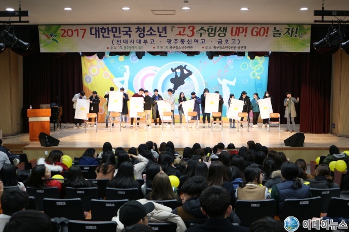 2017 대한민국 청소년 「고3 수험생, 청소년 UP! GO! 놀자!」를 12월5일(화) 광주동신여고 수험생 340명과 함께 북구청소년수련관 공연장에서 가졌다.