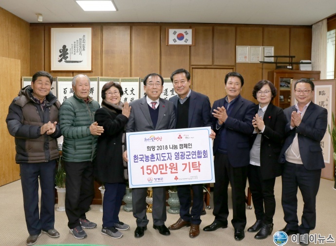 한국농촌지도자 영광군연합회(회장 김승기)는 지난 14일 관내 불우이웃을 위해 써달라며 150만원의 성금을 영광군에 전달했다.