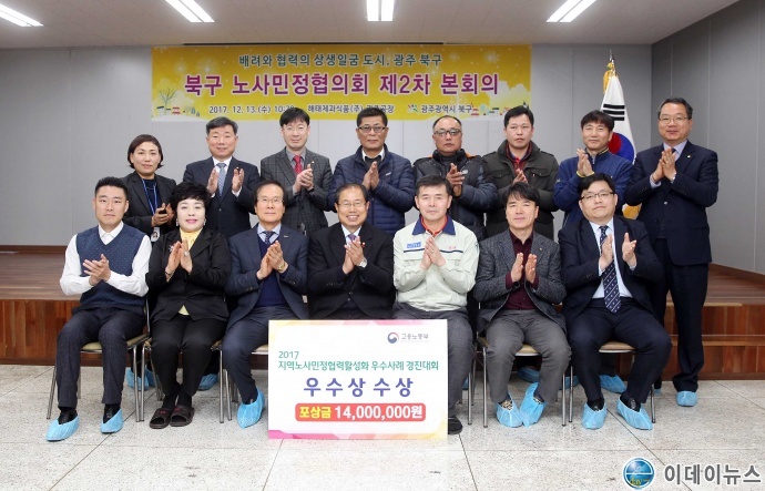 북구는 고용노동부 주관 ‘2017 지역노사민정 협력 활성화 우수사례 경진대회’에서 광주 자치구 중 유일하게 우수기관으로 선정돼 장관상 수상과 함께 포상금 1천 4백만원을 받았다고 17일 밝혔다.