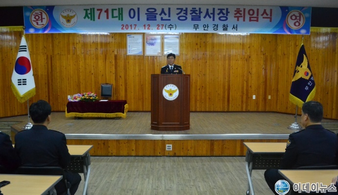 무안경찰서(총경 이을신)는 27일(수) 경찰서 4층 대회의실에서 전 직원이 참석한 가운데 무안경찰서 제 71대 이을신 경찰서장 취임식을 가졌다.