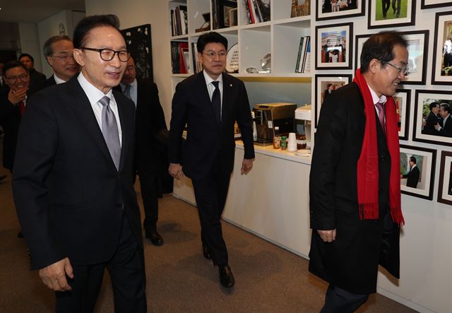 이날 면담은 좋은 분위기 속에서 진행됐다는 것이 홍 대표 측의 전언이다. 이 전 대통령은 이날 홍 대표가 도착하자마자 환영한다는 의미에서 박수를 치며 "야야, 왔어 왔어"라고 말하며 친근감을 표했다. 이날 면담에는 이 전 대통령 측에서는 이 전 대통령과 하금열 전 청와대 비서실장, 김두우ㆍ이동관 전 홍보수석, 김효재 전 정무수석 등이, 한국당에서는 홍 대표를 비롯해 장제원 수석대변인, 정태옥 대변인, 강효상 비서실장, 김대식 여의도연구원장 등이 참석했다.