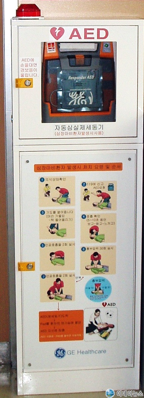 자동심장충격기는 심정지 환자에게 전기 충격을 주어 심장의 정상 리듬을 가져오게 하는 기기로, 의학지식이 부족한 일반인도 쉽게 사용할 수 있어 평상시 사용법과 위치를 파악해두는 것이 중요하다는 구의 조치다.