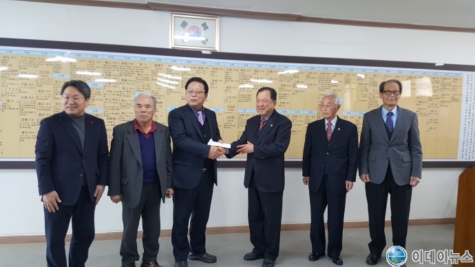 【고흥군종회의 강이식 장군 역산공원 헌성금 전달 사진】