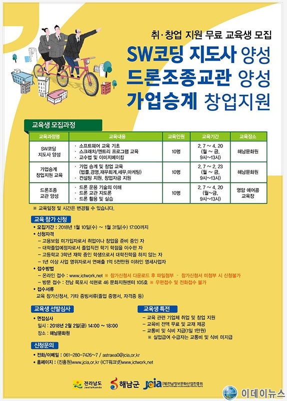 전라남도와 해남군 지원으로 진행되는 이번 교육은 해남군 2040세대 미취업자를 대상으로 기업수요에 부합하는 실습중심 맞춤형 교육운영을 통해 4차 산업혁명 시대에 부합하는 새로운 일자리를 창출하고 지역경제를 활성화하기 위해 마련됐다.