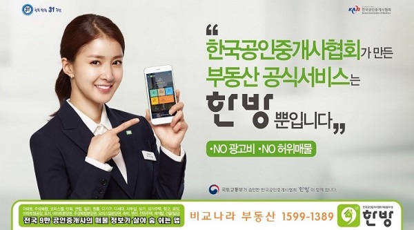공인중개사협회는 "온라인으로 전ㆍ월셋집이나 구매할 집을 찾는 소비자는 협회가 운영하는 스마트폰 부동산 중개 애플리케이션 `한방`을 이용하면 지금처럼 온라인 매물 검색을 할 수 있다"고 설명했다.