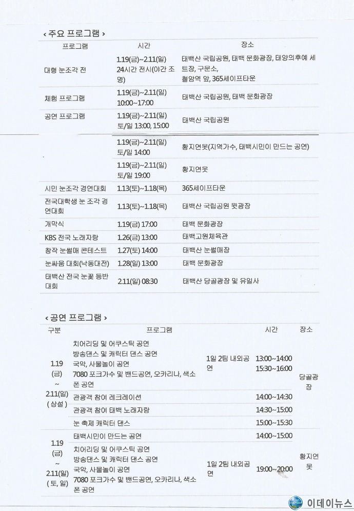 【태백산 눈축제 주요 전시 · 공연프로그램 홍보물 사진】