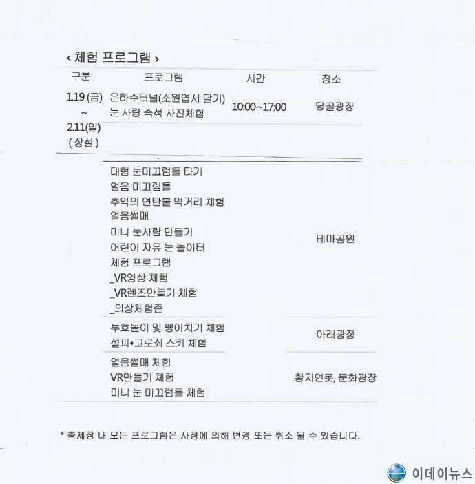 【태백산 눈축제 주요 체험프로그램 홍보물 사진】