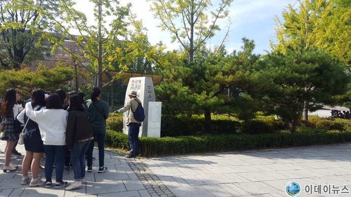 이들이 떠난 뒤에 ‘고산 윤선도 오우가 비’를 자세히 본다. 앞면에는 오우가가, 옆면에는 ‘고산 윤선도 생가의 터’라고 적혀 있다. 뒷면을 보니 ‘1587년(선조 20년) 서울 낙산 서편 연화방에서 태어난 고산 윤선도는 우리나라 시조문학의 거성으로 그의 오우가를 이 작은 돌에 새겨 옛 집터 언저리에 세운다. 1991년 12월21일 문화부’라고 적혀있다.
