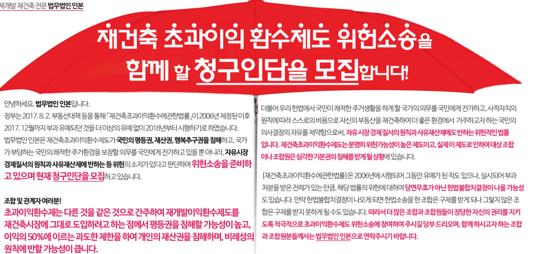 법무법인 인본의 김종규 대표변호사는 "재초환은 강남에 국한된 이야기가 아니다"라면서 "서울 강북 지역과 지방의 관심이 이전보다 늘었고 개인자격으로 소송에 참여하겠다는 의사를 밝힌 사람들도 적지 않다"고 말했다.