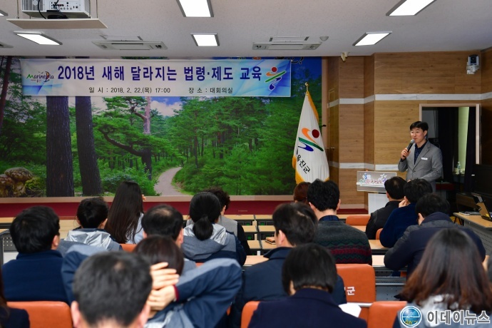 울진군은 지난 22일 군청 대회의실에서 직원 100여명을 대상으로 「2018년 새해 달라지는 법령·제도 교육」을 실시하였다.