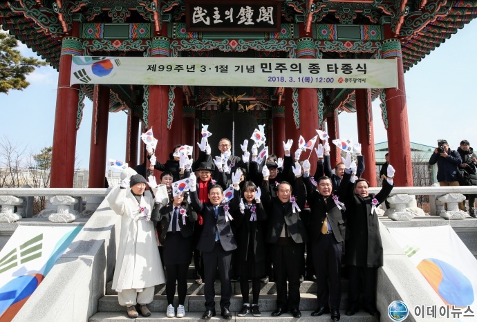제99주년 3·1절 기념 '민주의 종 타종식'이 1일 오전 11시50분 민주의 종각에서 진행됐다.