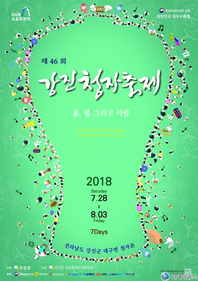 7월 28일부터 8월 3일까지 대구면 고려청자 요지 일원에서 개최되는 문화체육관광부 선정한 대한민국 최우수 축제 ‘제46회 강진청자축제’ 포스터가 확정됐다.