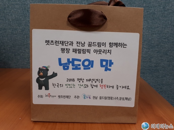 특히 이번 페럴림픽 나들이는‘전남의 맛’을 주제로 하는 아웃리치로 진행하는데 전남의 대표 맛은 영광의 모싯잎 송편, 해남의 고구마, 장성의 고로쇠 수액, 나주의 배즙을 평창페럴림픽을 응원하는 전남의 맛 패키지에 담아 이번 페럴림픽에 참여한 외국인들에게 소개한다.