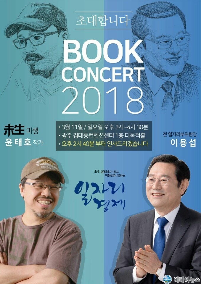 북 콘서트는 수많은 비정규직, 계약직, 사회초년생들의 아픔을 대변하며 ‘미생(未生) 신드롬’의 돌풍을 일으킨 윤태호 작가가 ‘대한민국 일자리 경제’를 묻고 이용섭 전 일자리위원회 부위원장이 답하는 형식으로 진행된다.