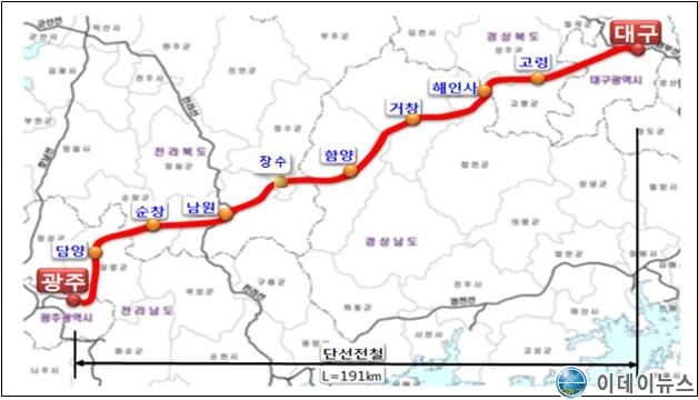 달빛내륙철도는 광주-대구간 191.6㎞ 전 구간을 잇는 고속화철도이며 총사업비 6조원 이상을 전액 국비로 추진하는 대형 국책사업으로 내년도 국책사업으로 확정될 경우 공사기간은 2019년부터 2030년까지 예정하고 있다.