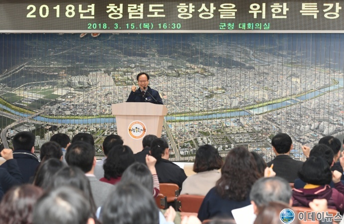 강사로 나선 이광옥 부군수는 “예로부터 청렴은 공직자의 기본 덕목이며 청렴이 바탕이 되어야 행정이 신뢰를 확보할 수 있다.”라고 강조하면서, “현대 행정은 적법한 행정절차와 공직자 행동강령 준수, 주요 공직비리 적발 시 무관용 원칙 적용, 정치적 중립의무 등이 중시되고 있다.”고 말했다.