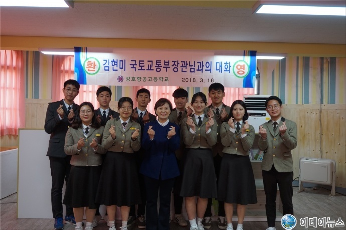 김현미 국토교통부 장관이 16일 전북 고창에 소재한 항공특성화학교인 강호항공고등학교를 방문해 항공정비인력 양성정책 추진상황을 점검하고 학생과 교사와의 대화의 시간을 가졌다.