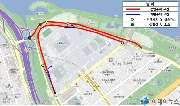- 여의서로 및 서강대교 남단 둔치도로 진입로→여의하류IC 24시간 통제