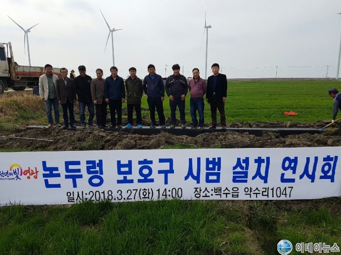 영광군은 지구 온난화로 인한 기상이변으로 농업용수의 소모가 증가됨에 따라, 물 부족 현상을 대비하기 위해 봄철 논물 가두기 일환으로 논두렁 보호구를 설치하는 연시회를 지난 27일 백수읍 약수리 일원에서 개최하였다.