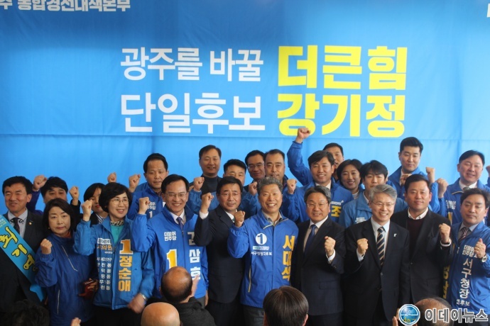 강기정 예비후보는 “단일화를 이룬 민형배, 최영호 공동선대위원장과 같이 열정적 지지를 해주신 지역의 선후배분들과 화합의 통합경선대책본부를 구성했다”면서 “세 사람이 단일팀을 만든 것 자체로 이미 이번 선거에서 승리를 했다고 확신한다”고 밝혔다.