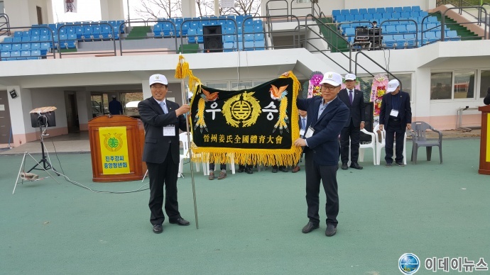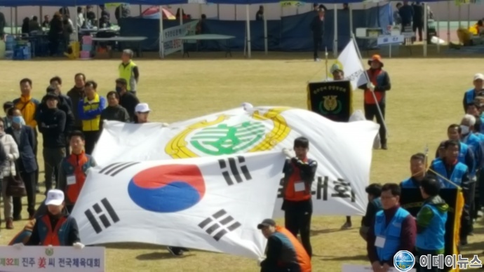 【제32회 진주강씨 전국체육대회 태극기와 대회기 입장후 사진】