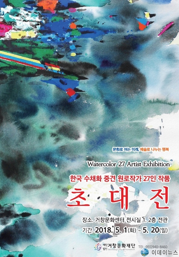 거창문화재단(이사장 양동인 거창군수)은 한국 수채화 중견 원로 작가 27인 작품 초대전을 오는 5월 1일 15시, 개전식을 시작으로 5월 20일까지 20일간 거창문화센터 전시실에서 개최한다.