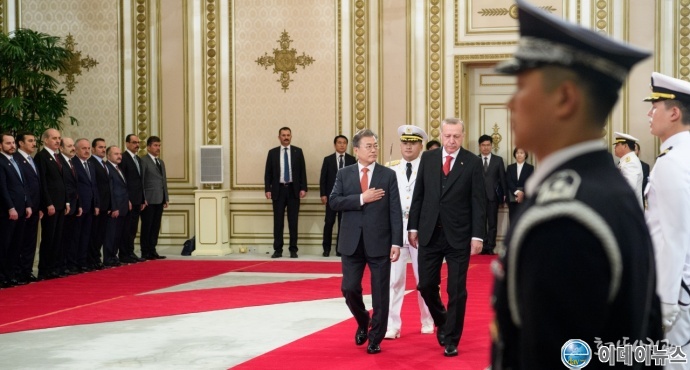 [문재인 대통령, 에르도안 터키 대통령 공식환영행사 사진 : 청와대 제공]