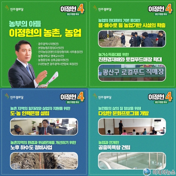 6.13 지방선거 광산구청장 선거에 출마한 민주평화당 이정현(민주평화당 광산갑지역위원장)후보는 교육, 복지 공약 발표에 이어 농촌지역 및 농업에 대한 정책과 공약을 발표했다.