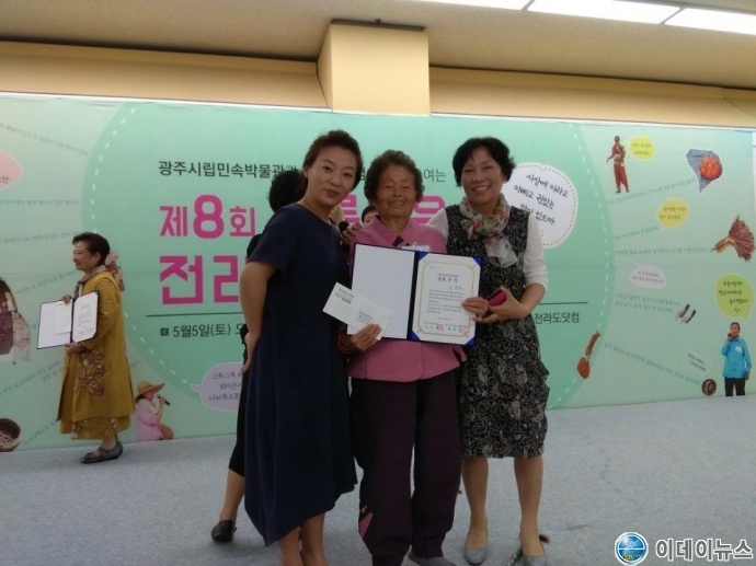 지난 5일 광주시립민속박물관에서 개최된 ‘제8회 아름다운 전라도말 자랑대회’에서 무안군 현경면 마산리 김정순(83세) 씨가 질로 존 상(대상)을 수상했다.