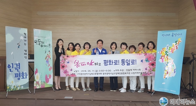 더불어민주당 김병내 광주남구청장 예비후보는 11일 오후 지역봉사단체인 민들레어머니회(대표 서현미) 주최로 남구장애인종합복지관에서 열린‘봄바람 타고 평화로 통일로’행사를 찾아 지역공동체가 하나 되어 한반도에 찾아든 평화와 통일의 기대감을 현실로 만들어가자고 말했다.
