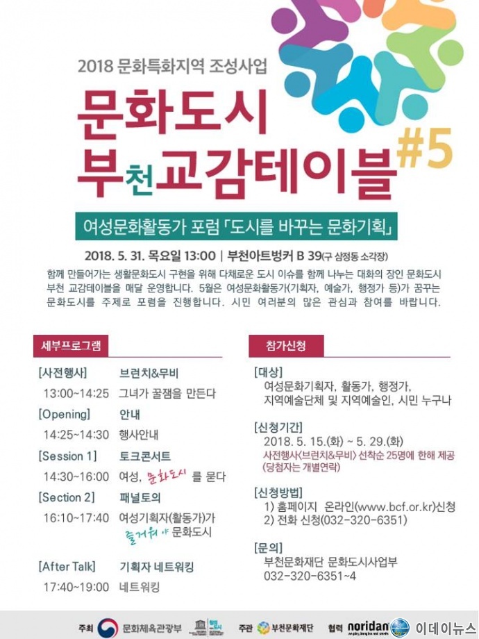 폐막 이후 5월 31일 오후엔 부천아트벙커39(B39)에서 ‘도시를 바꾸는 문화기획’을 주제로 토크콘서트와 포럼을 개최한다. 일반 시민부터 문화기획자, 행정가, 예술단체, 학생 등 문화에 관심 있는 누구나 무료로 참여할 수 있으며, 사전 신청자에 한해 여성인권영화제 상영작 <그녀가 꿀잼을 만든다> 무료 관람과 브런치를 제공받을 수 있다. 참석을 원하는 이는 재단 홈페이지(www.bcf.or.kr) 온라인 접수 또는 전화(032-320-5351~4)로 신청할 수 있다.