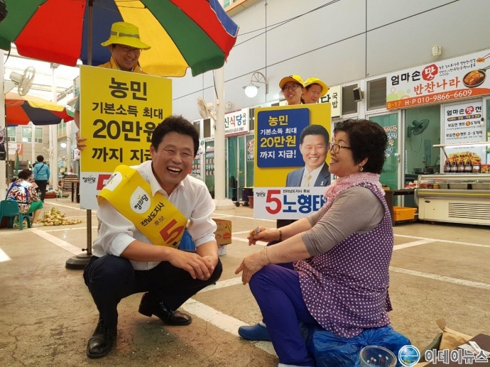 노 후보는 주말, 5일장을 찾은 전남도민들께 “문재인 정부 개혁을 견인할 유일한 야당이 정의당임을 말씀드리고, 이어 ‘농민기본소득 최대 20만원까지 지급’, “어린이병원비 100만원 상한제” 등 주요 공약을 얘기하며 지지를 호소하였다.
