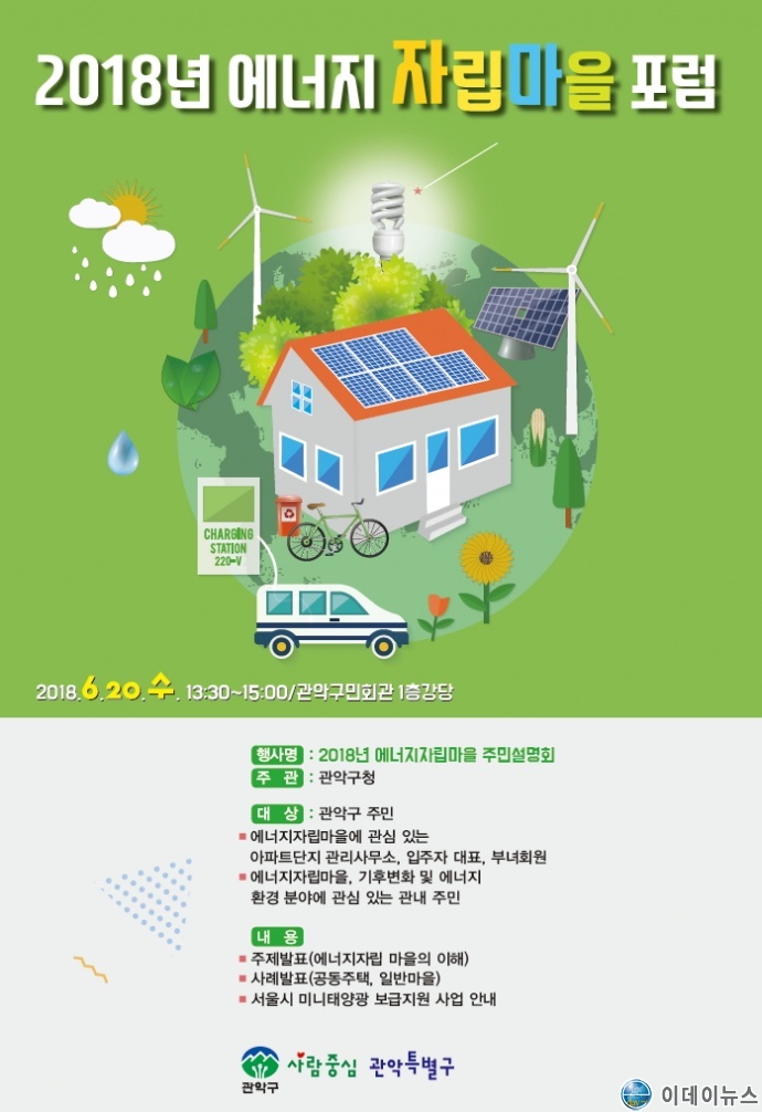 관악구가 오는 20일 구민회관에서 ‘에너지 자립마을 만들기’ 포럼을 연다.