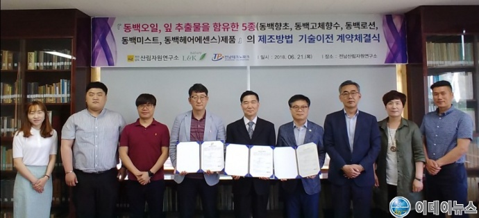 전라남도산림자원연구소(소장 김종기)는 21일 ‘동백 특화제품 5종 및 제조 방법’ 기술을 동백제품 전문 회사인 여수 소재 ㈜엘엔케이네이처(대표 김광진)에 기술이전을 했다고 24일 밝혔다.