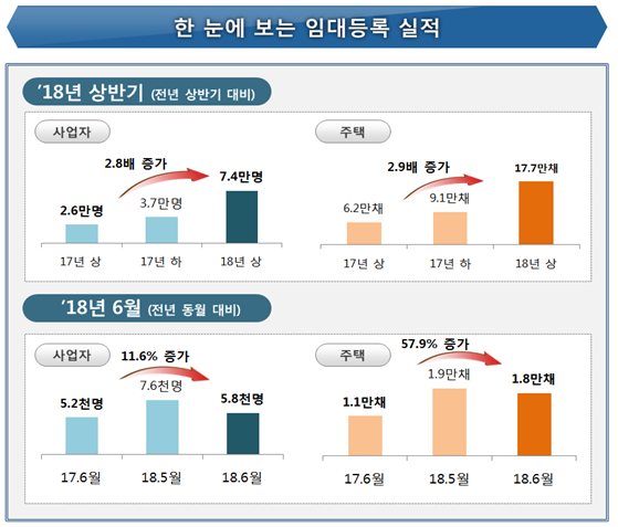 [아유경제=김학형 기자] 올해 상반기에 새로 등록한 임대주택사업자가 작년 같은 기간의 2.8배, 임대주택 등록은 2.9배 각각 증가했다.