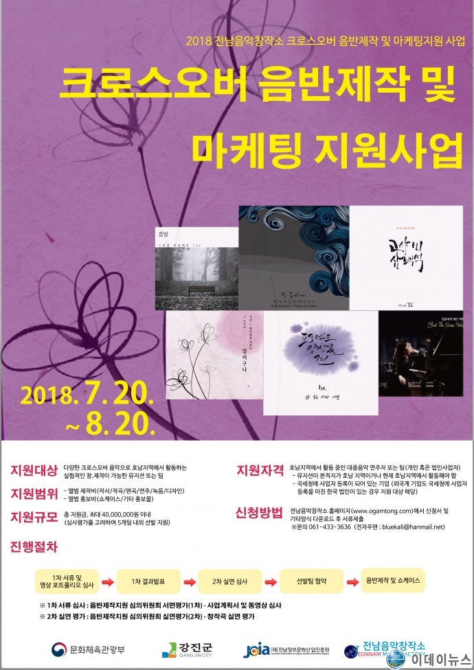 전남음악창작소는 지역 음악의 자생력 강화와 지역기반 음악 산업의 활성화를 위해 음반제작 지원 사업을 실시한다.