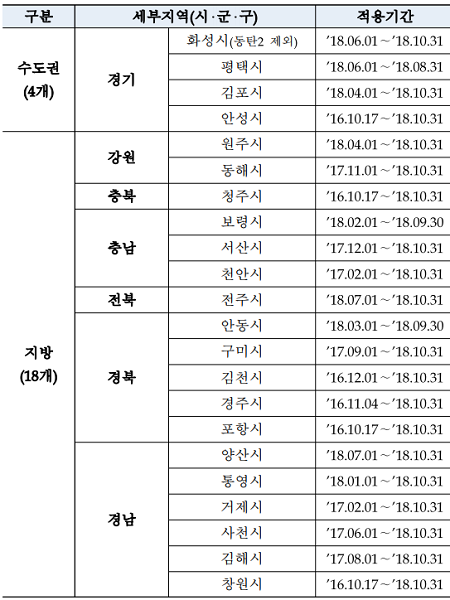 이번에 미분양관리지역으로 선정된 곳은 ▲경기 화성(동탄2 제외)ㆍ평택ㆍ김포ㆍ안성시 ▲강원 원주ㆍ동해시 ▲충북 청주시 ▲충남 보령ㆍ서산ㆍ천안시 ▲전북 전주시 ▲경북 안동ㆍ구미ㆍ김천ㆍ경주ㆍ포항시 ▲경남 양산ㆍ통영ㆍ거제ㆍ사천ㆍ김해ㆍ창원시 등 22곳이다.