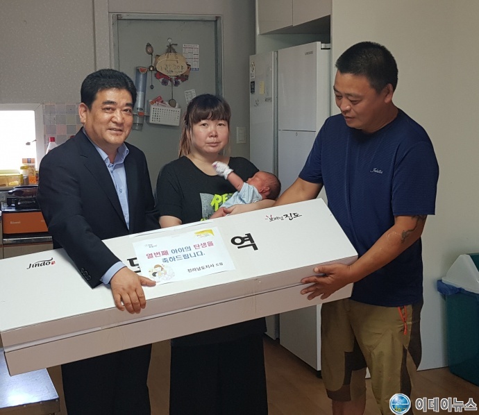 이에 따라 전라남도는 지역사회의 출산 장려 분위기 확산을 위해 최 씨 가정을 지난 6일 방문해 격려하고, 신생아 양육비 30만 원을 전달했다. 또 영광군에서는 1천500만 원을 전달하고 출산 축하용품, 양육수당, 각종 예방접종, 임산부영유아 건강관리 등을 지원한다.
